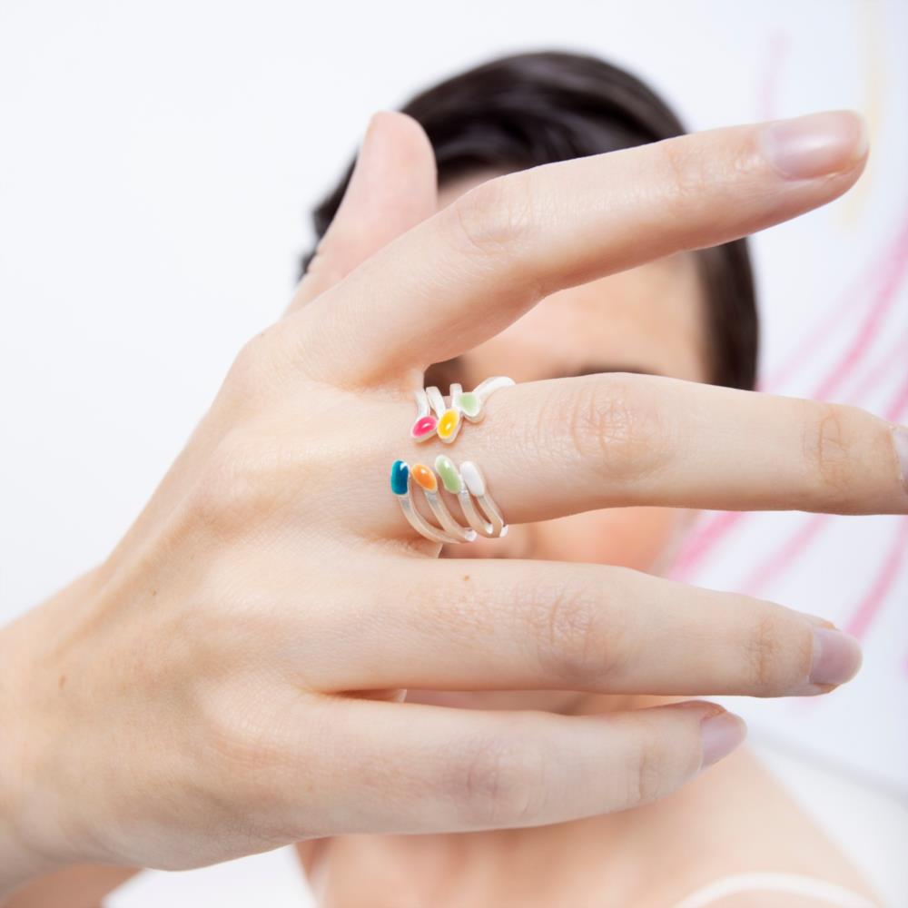 Anillo plateado con esmaltes fríos