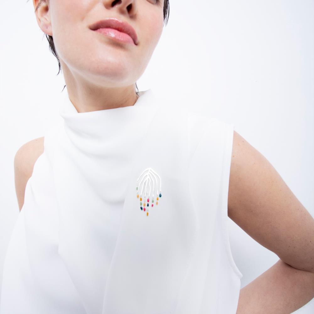 Broche plateado con esmaltes fríos multicolor