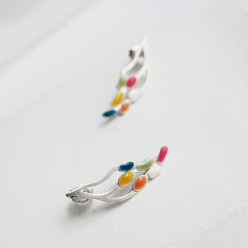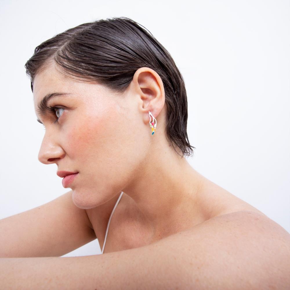 Pendientes plateados con esmaltes fríos multicolor