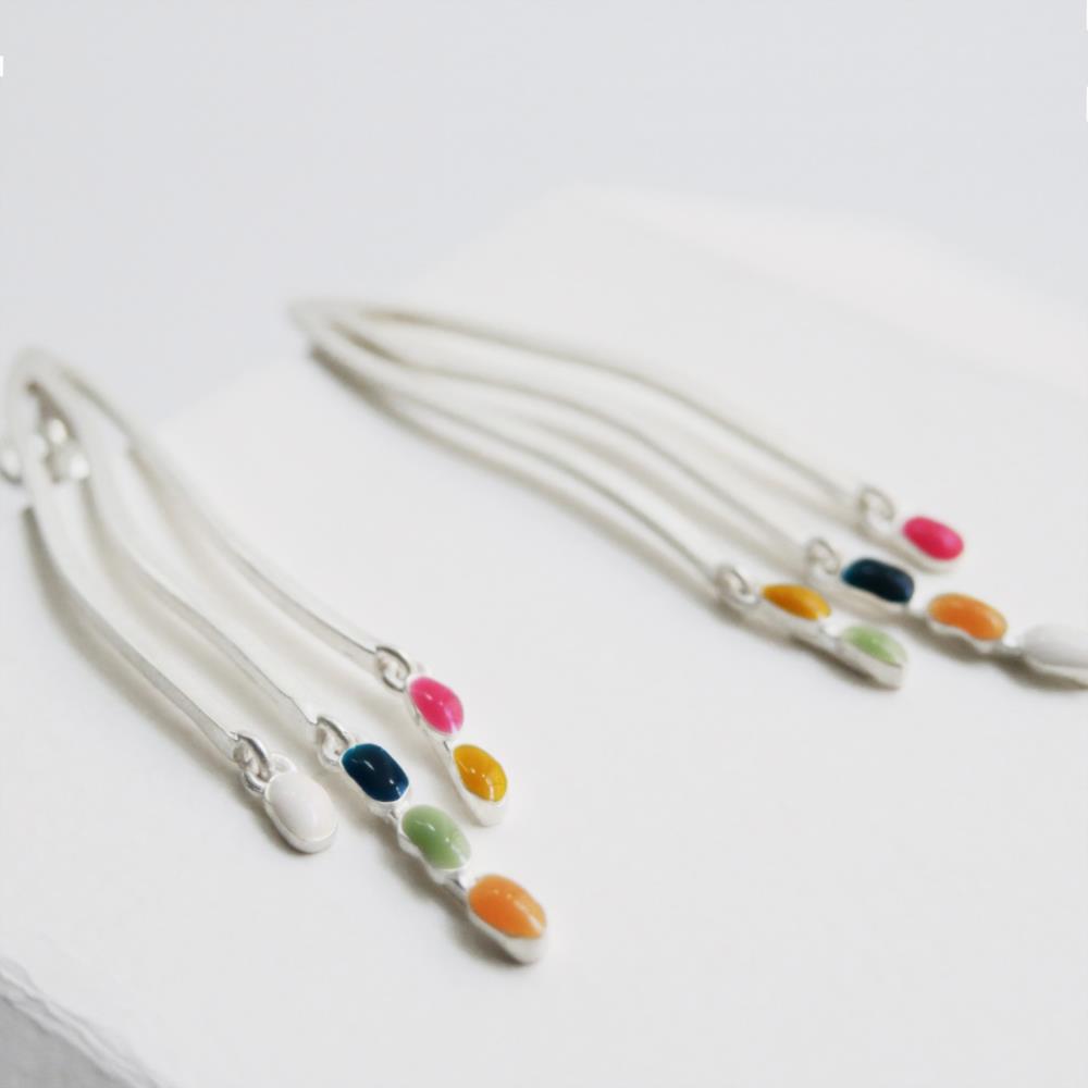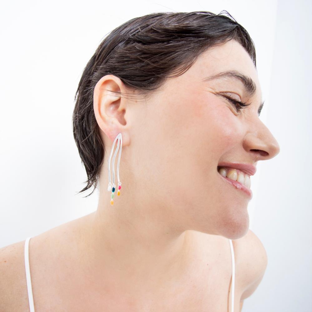 Pendientes plateados con esmaltes fríos multicolor