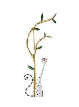 Alfiler de plata con baño de oro y esmalte de gato en rama