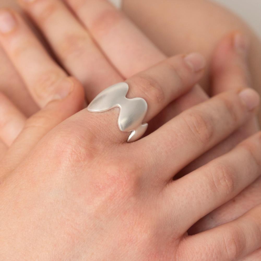 Anillo plateado ondas